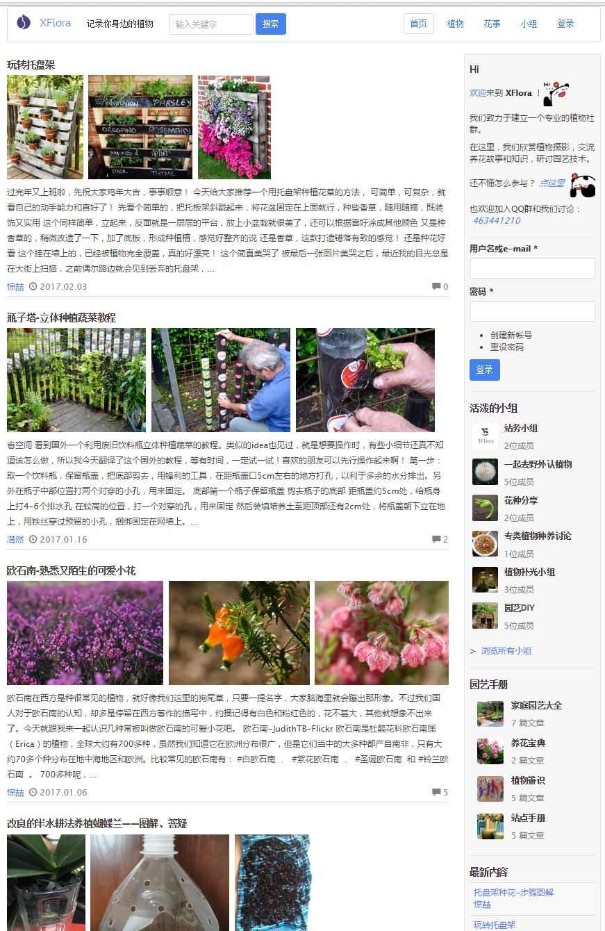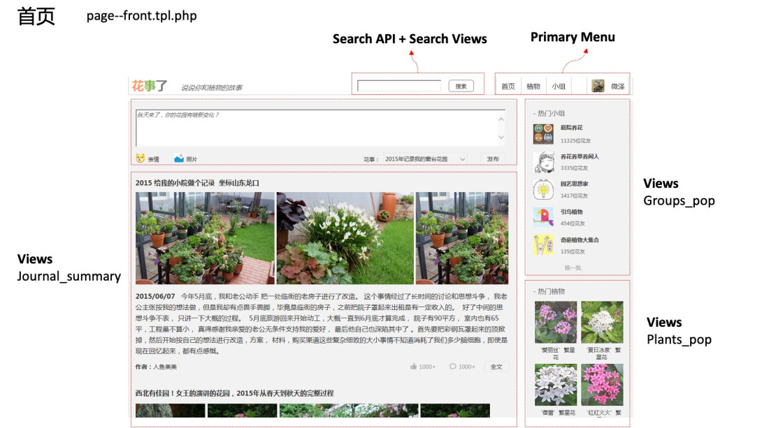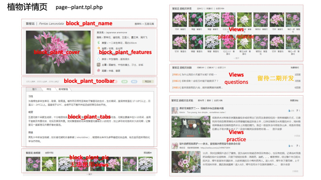 2)植物库、花事、小组、收藏等功能研发,主要基于Views系列模块+主题覆写;